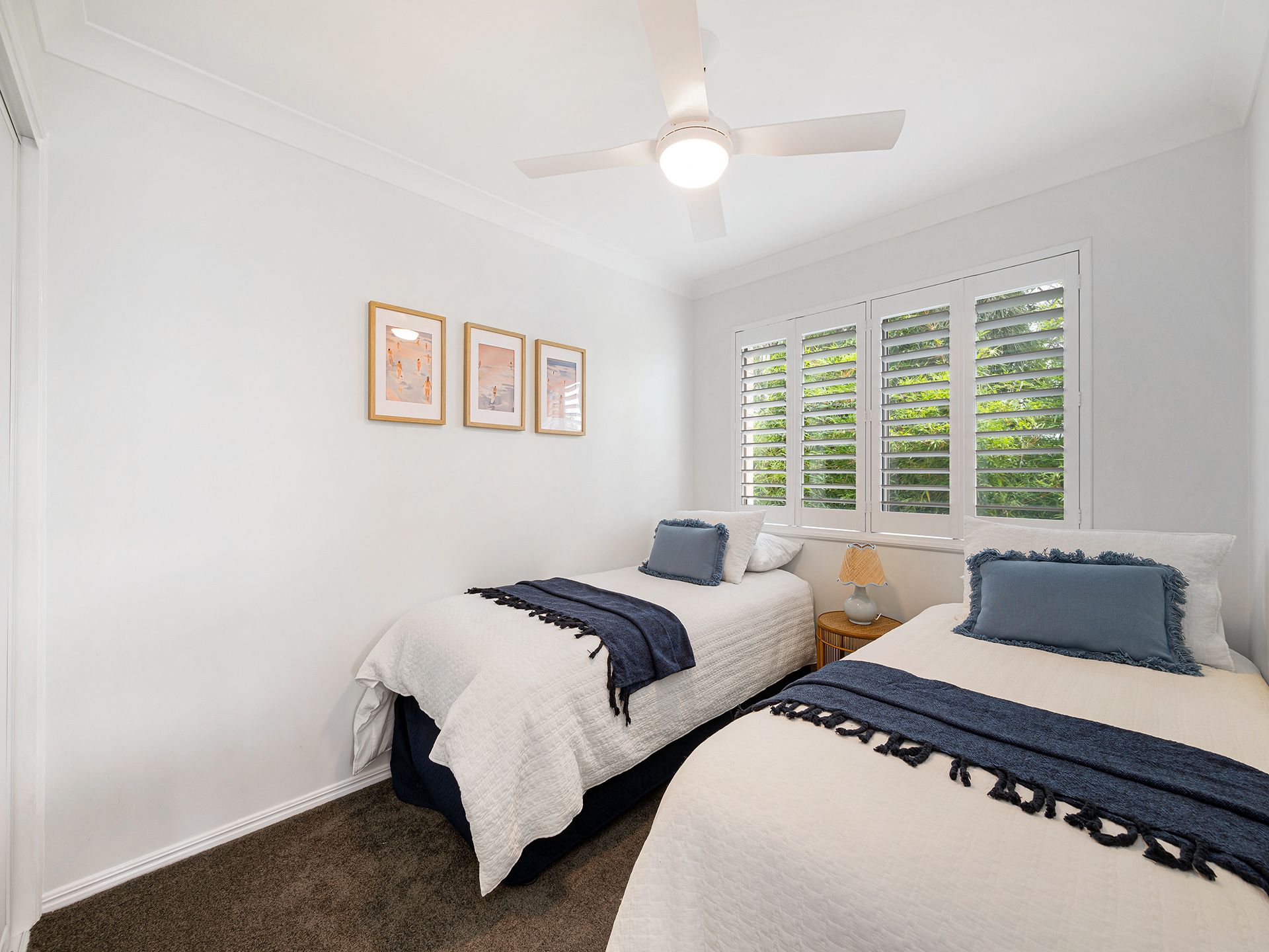 The second bedroom with a queen bed and the third with 2 extra long singles. There is a a central bathroom with a separate toilet.