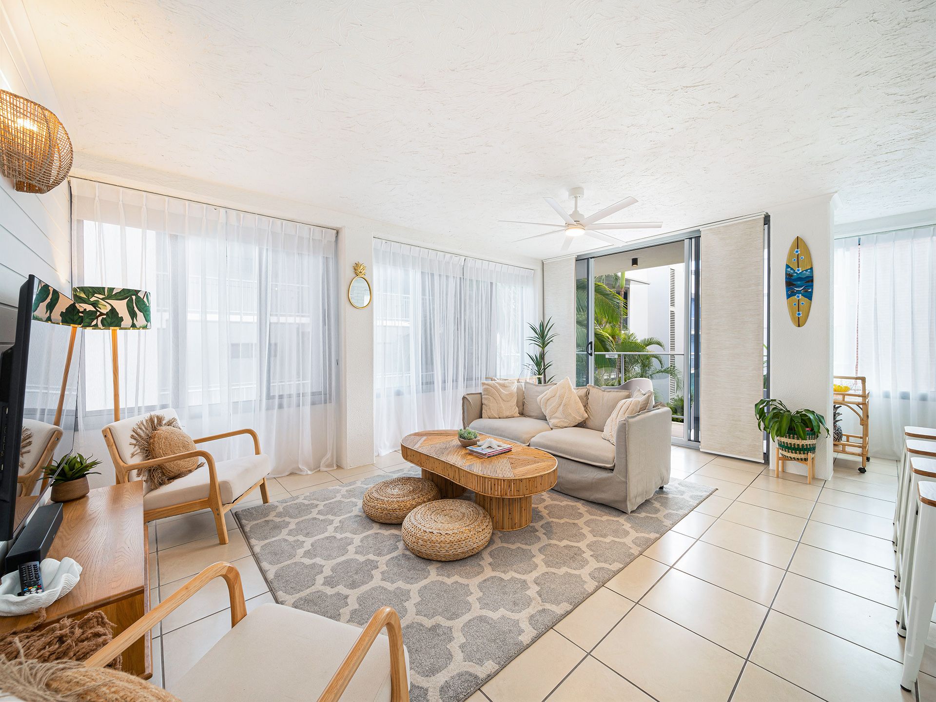 The apartment comes with a secure garage, for one car. The amenities also include air conditioning in the main living space and master bedroom , ceiling fans and a washer and dryer, ensuring your holiday is convenient and comfortable.